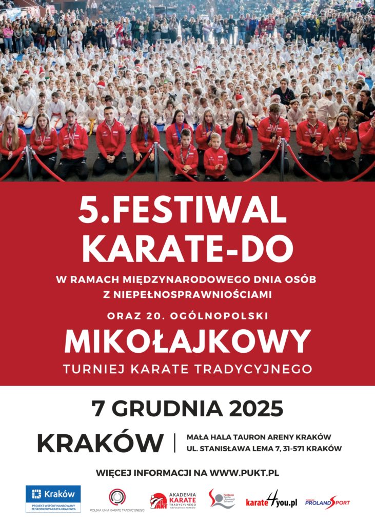 7 grudnia 2025 w Krakowie odbędzie się 5. Festiwal Karate-Do dla Osób z Niepełnosprawnościami oraz Ogólnopolski Mikołajkowy Turniej w Karate Tradycyjnym.