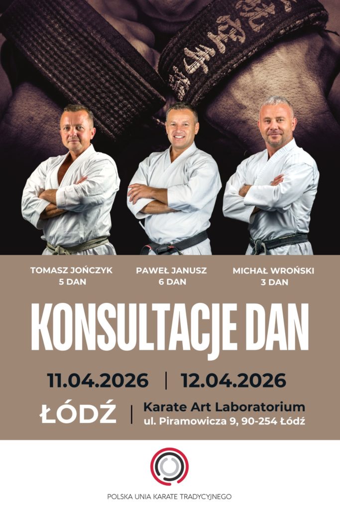 W sobotę 11 kwietnia 2026 i w niedzielę 12 kwietnia 2026 odbędą się konsultacje Dan, prowadzone przez trenerów kadry PUKT.